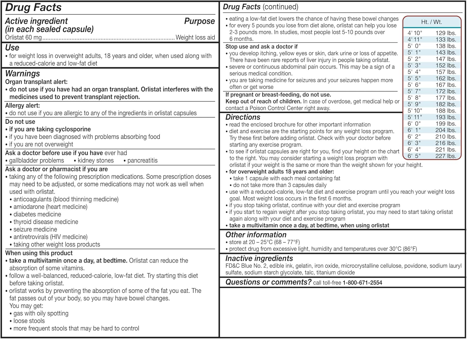 Alli Weight Loss Diet Pills contain Orlistat 60 mg, a clinically proven, FDA-approved weight loss aid designed for adults who are overweight. Unlike other supplements, Alli works in the digestive system by blocking about 25% of the fat you eat from being absorbed, helping you lose weight more effectively when combined with a reduced-calorie, low-fat diet.